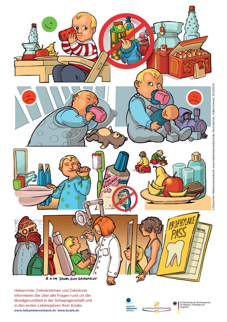 Kurze, alltagstaugliche Empfehlungen zu Zahnpflege, Ernährung, Schnuller und Zahnarztbesuchen – damit frühkindliche Karies gar nicht erst entsteht.